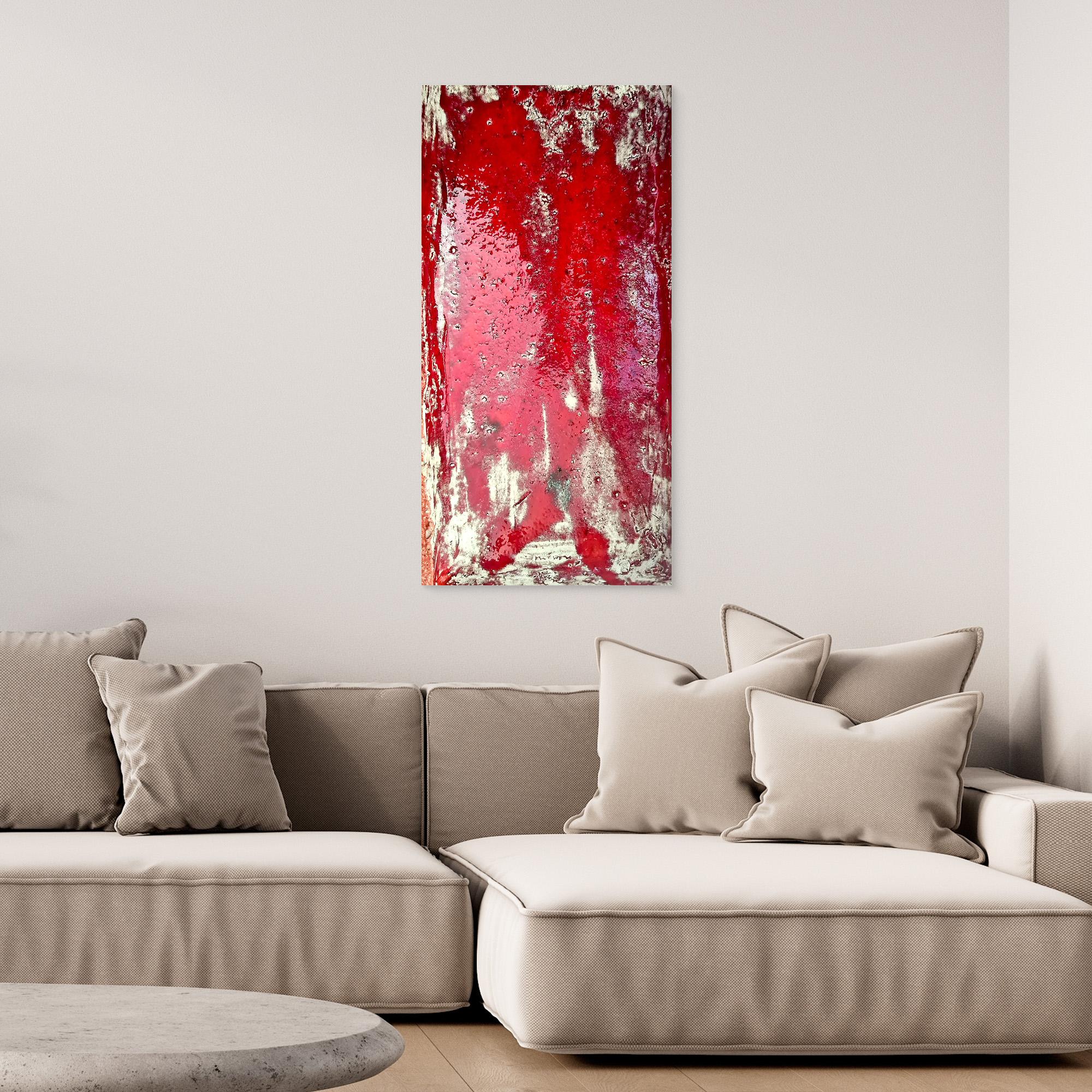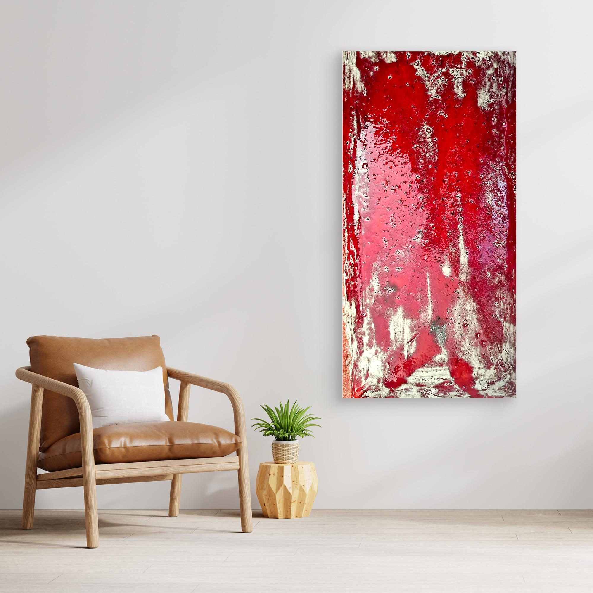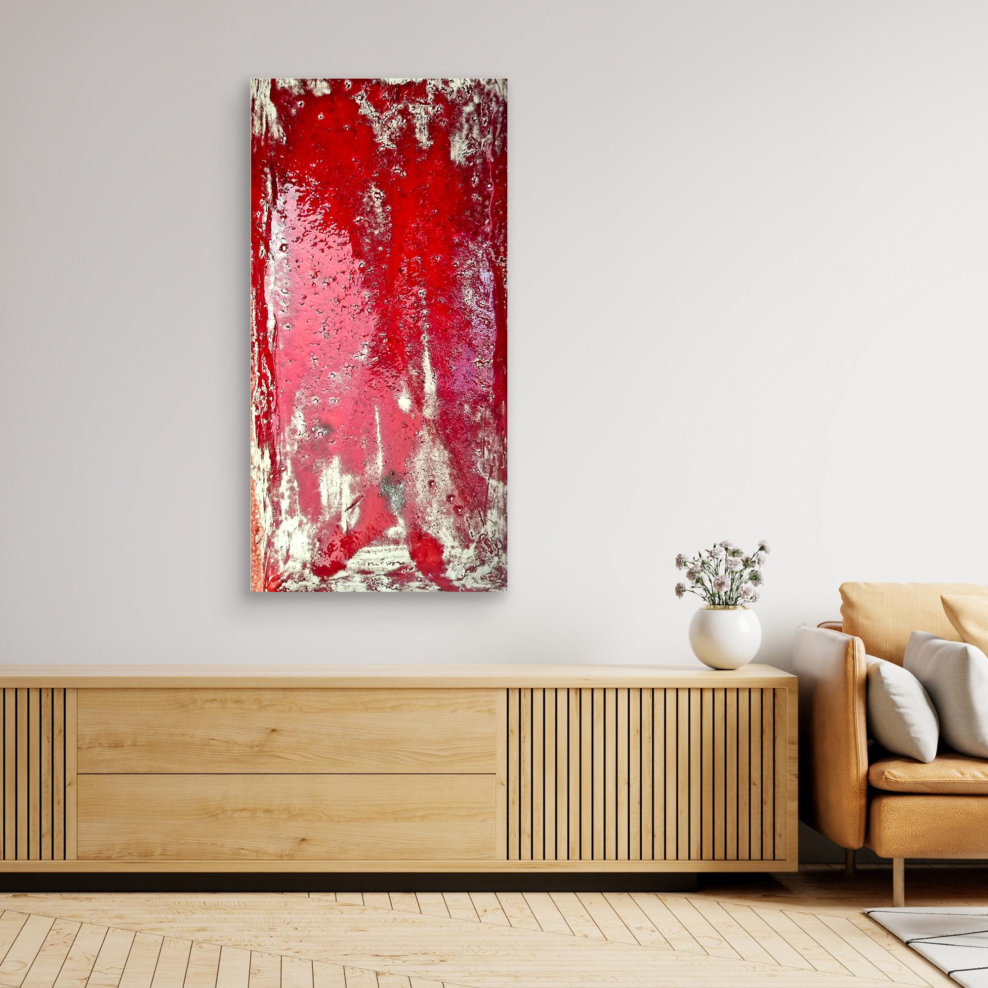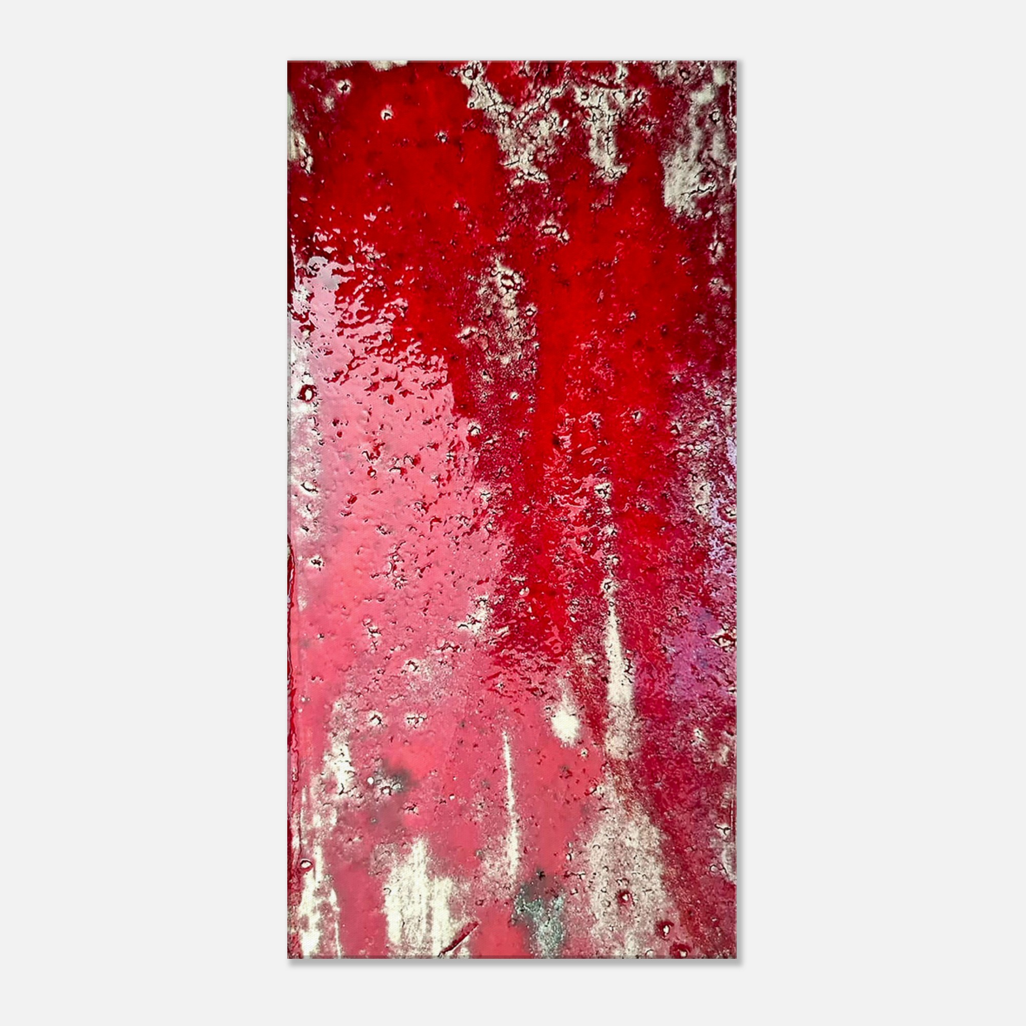 In this ceramic artwork, Maryam Eskandari captures the raw intensity of emotion through deep crimson glazes layered with fractured textures. The bold interplay of red and white evokes both fire and ash , a landscape where passion collides with stillness. The rough surface, punctuated by subtle marks and cracks, tells of resilience and transformation, like molten earth cooling after an eruption. It is at once violent and serene, a meditation on the fragile balance between destruction and renewal.